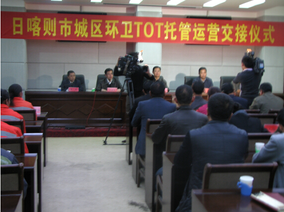西藏國策環(huán)??萍脊煞萦邢薰九c日喀則市人民政府于2014年4月26日舉行了日喀則市城區(qū)環(huán)衛(wèi)TOT運營交接儀式。