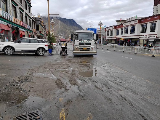 直至6月28日午時(shí),國策環(huán)保山南分公司累計(jì)出動(dòng)環(huán)衛(wèi)工人100余人次、裝載機(jī)10余車次、灑水車20余車次、路面清掃車20余車次,已清理泥土沙石總量約為20噸,市內(nèi)主要干道及泥石流發(fā)生路段已全面清理完成。
