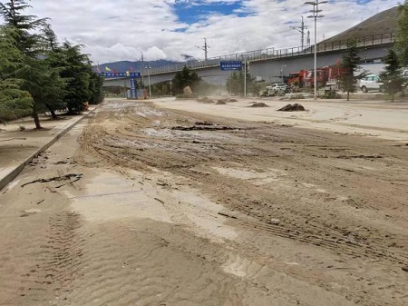 面對突發(fā)險(xiǎn)情,國策環(huán)保山南分公司總經(jīng)理久米土單高度重視,第一時(shí)間組織人員、調(diào)配車輛奔赴現(xiàn)場疏散途經(jīng)的車輛及行人,組織機(jī)械對泥石流形成的土石、泥沙進(jìn)行清運(yùn),以最快速度消除道路安全隱患。