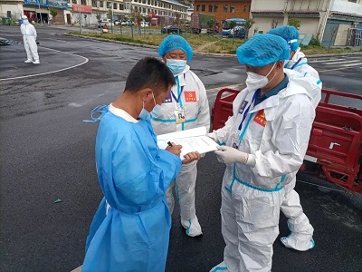 (國策環(huán)保林芝分公司工作人員對(duì)低風(fēng)險(xiǎn)區(qū)域進(jìn)行生活垃圾清運(yùn))